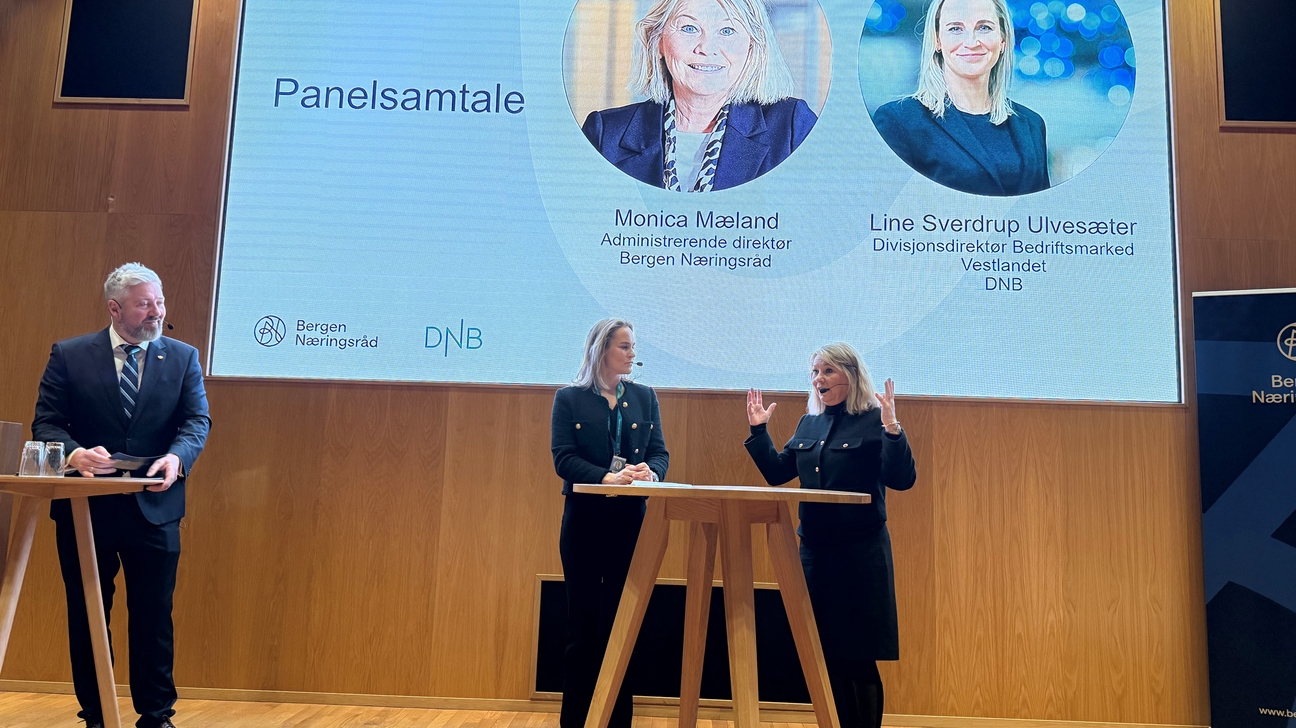 – Optimismen er der fortsatt, men pilen peker litt nedover ved inngangen til 2026. Det er uvanlig stort sprik mellom bransjene. Finanssektoren ser for seg et godt år, mens andre er mer lunkne, sier Monica Mæland, administrerende direktør i Bergen Næringsråd.